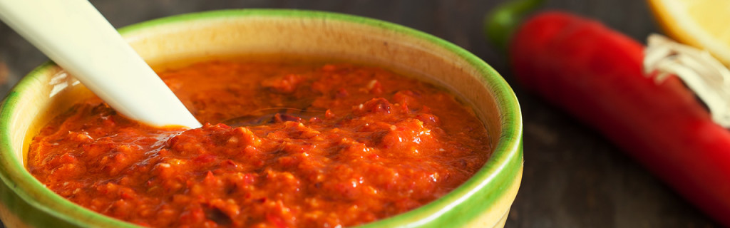 L’harissa si prepara con peperoncini rossi ridotti in purea e conditi con un po’ d’aglio, sale, cumino e coriandolo. Una salsa speziata e di carattere, che sprigiona ancor più il suo aroma se stemperata con un po’ d’olio d’oliva. Il nome deriva dal verbo arabo “harasa” che significa “schiacciare, pestare, macinare” e che descrive il metodo di preparazione dei peperoncini. Dal XVII secolo, quando cominciarono le prime coltivazioni di peperoncini nella regione del Cap Bon, dove si trova la pittoresca città di Hammamet, la ricetta dell’harissa viene trasmessa di generazione in generazione. Fino ad oggi il savoir-faire antico si è conservato e l’harissa si continua a preparare come una volta, alla maniera casalinga. Nonostante gli ingredienti non cambino, ogni produttore ha il suo piccolo segreto, perciò ogni harissa ha un gusto unico. Oggi, in Tunisia, sui banchi del mercato, i recipienti di harissa competono per forma, per sapore e per grado di piccantezza. C’è n’è per tutti i gusti, per grandi e piccini, per quelli che adorano il piccante e quelli che preferiscono un gusto più delicato. Ne esistono più di 34 varietà in Tunisia.