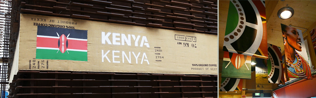 A Expo Milano 2015, il Kenya espone nel Cluster del Caffè. Il focus del percorso è puntato su una delle sfide più importanti che il Paese africano sta affrontando: la sicurezza alimentare. Il Padiglione consente naturalmente al pubblico anche di assaggiare le prelibatezze keniane, tra cui per l’appunto il caffè, in varie miscele. Il caffè keniota ha un’ottima reputazione, perché cresce sul suolo vulcanico e viene lavorato molto rapidamente dopo il raccolto, mantenendo così tutto il suo aroma floreale. Al di là del gusto, al caffè keniota sono riconosciuti vari benefici, che lo hanno considerare un superfood: è infatti ricco di antiossidanti, che prevengono dai danni causati dai radicali liberi.